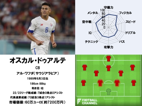 ワールドカップ3大会連続出場を果たしたコスタリカ代表の守備の要。現在はサウジアラビアのアル・ワフダでプレーしているが、過去にはエスパニョールやレバンテに在籍しており、ラ・リーガで通算111試合に出場した経験を持っているなど実力は確かだ。