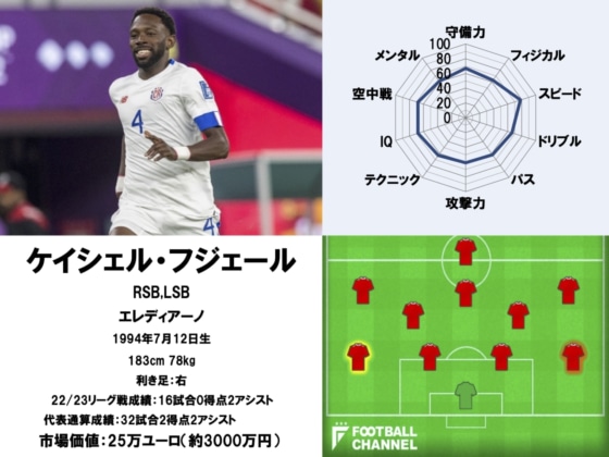 2部リーグでプロデビューし、地道に這い上がってきたDF。2019年に行われたアメリカ合衆国との親善試合でコスタリカ代表初出場を飾ると、一気に右サイドのファーストチョイスとなり、堂々とカタールワールドカップ行きの切符を掴み取った。