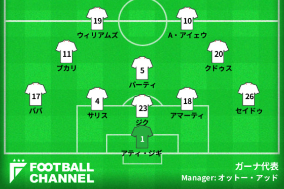 ガーナ代表、韓国代表戦の予想フォーメーション