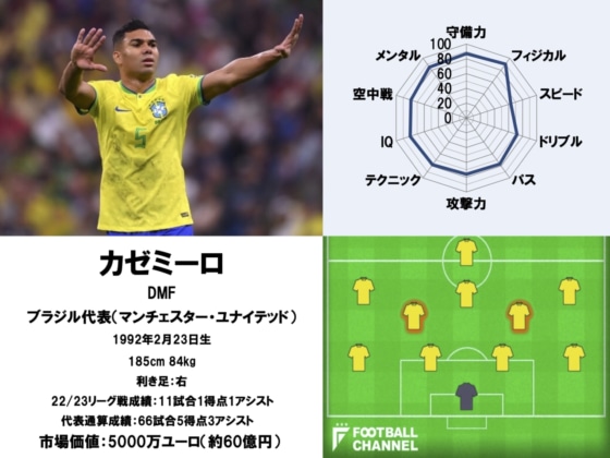 3位:カゼミーロ(ブラジル代表/マンチェスター・ユナイテッド)