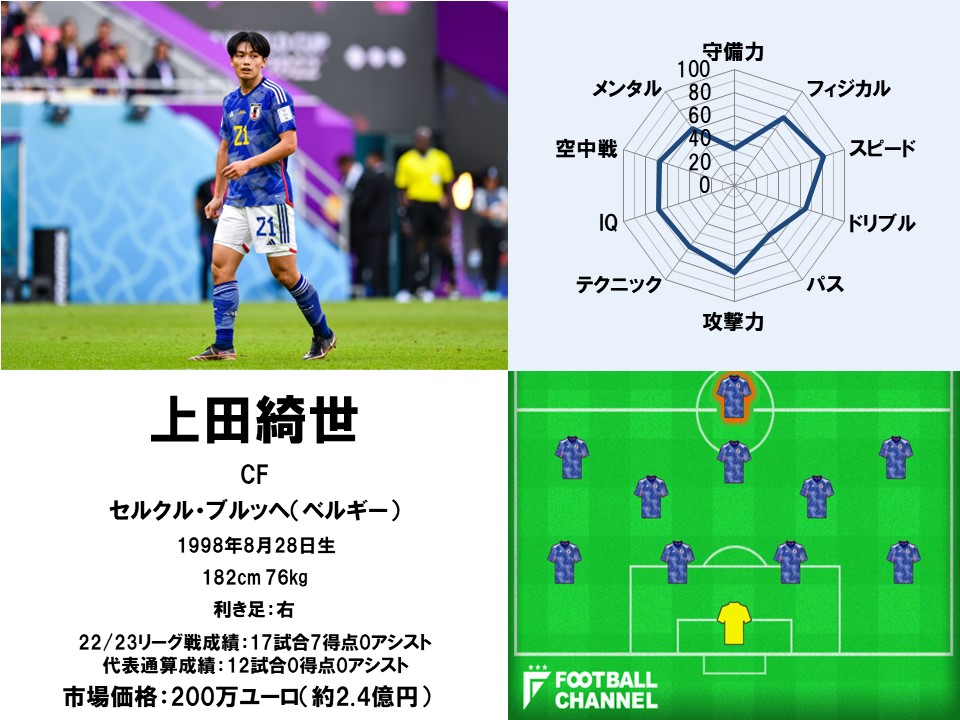 2019年のコパ・アメリカで日本代表デビューを果たし、ここまで9試合に出場してきたが、インパクトを残せているとは言い難い。それでも最激戦区と見られていたFW枠で生き残り、カタールワールドカップへの挑戦権を掴み取ることになった。