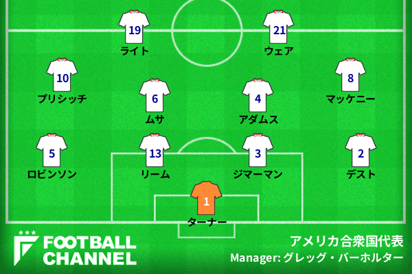 アメリカ合衆国代表の予想フォーメーション