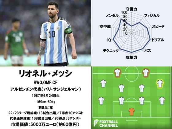 能力値の一つにでも90以上の数値があれば凄いことなのだが、メッシは「ドリブル」「パス」「攻撃力」「テクニック」「IQ」で驚異の90超えを叩き出した。