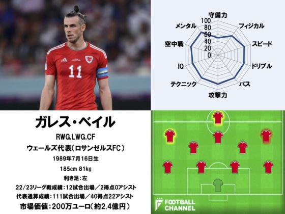 ガレス・ベイルは欧州からアメリカへと渡り、全盛期と比較すると能力は落ちているが、それでもFWとして完成度が高いことに変わりはない。
