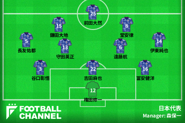 ボランチは遠藤航と守田英正。シャドーは鎌田大地と堂安律が務めると予想される。3日と前日の練習を欠席した久保建英はメンバー外となっている。