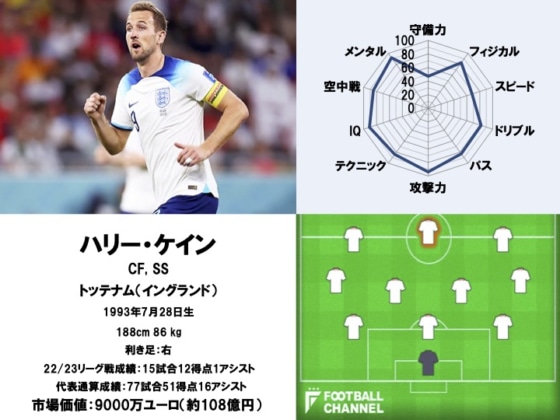このイングランド代表CFの最大の武器は圧倒的な「攻撃力」。両足から放たれる高精度のシュート、優位を作るポジショニング、ゴール前に飛び込むタイミングなど、ストライカーが要するほとんどのスキルを併せ持つ。決定力の高さは欧州の中でも群を抜いており、トッテナム復帰以降は脅威的なペースで得点を記録し続け、17/18シーズンには自身のキャリアハイとなるリーグ戦30得点を記録している。