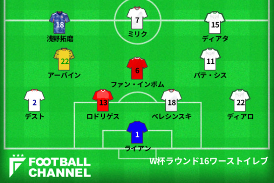 【画像】ラウンド16ワーストイレブンのフォーメーション