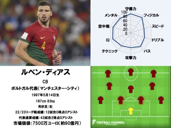 18位:ルベン・ディアス(ポルトガル代表/マンチェスター・シティ)