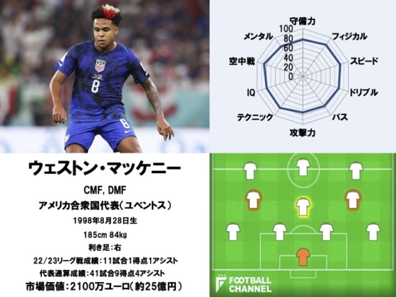 21位:ウェストン・マッケニー(アメリカ合衆国代表/ユベントス)