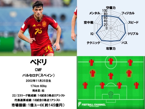 大会期間中に誕生日を迎えたが、まだ20歳。自身初のワールドカップに挑んだペドリは自慢の「IQ」や「テクニック」をピッチ上で遺憾なく発揮し、スペイン代表の中心選手の1人として活躍した。