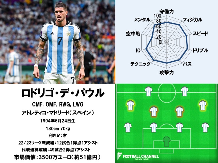 35位:ロドリゴ・デ・パウル(アルゼンチン代表/アトレティコ・マドリード)