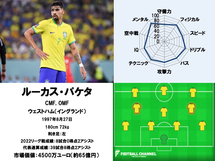 42位:ルーカス・パケタ(ブラジル代表/ウェストハム)