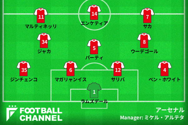 プレミアリーグ 3年前 トッテナム対アーセナル、予想スタメン&フォーメーション。冨安健洋の先発出場は? text by 編集部 photo by Getty Images アーセナルの予想フォーメーション アーセナルの予想フォーメーション ▽GK 1 アーロン・ラムズデール ▽DF 4 ベン・ホワイト 12 ウィリアン・サリバ 6 ガブリエウ・マガリャンイス 35 オレクサンドル・ジンチェンコ ▽MF 5 トーマス・パーティ 8 マルティン・ウーデゴール 34 グラニト・ジャカ ▽FW 7 ブカヨ・サカ 14 エディ・エンケティア 11 ガブリエウ・マルティネッリ 【最初から読む】 トッテナム対アーセナル、予想スタメン&フォーメーション。冨安健洋の先発出場は? 【了】 アーセナル イングランド コラム サッカー日本代表 ニュース プレミアリーグ 冨安健洋 欧州サッカー 海外サッカー 1 2 3 4