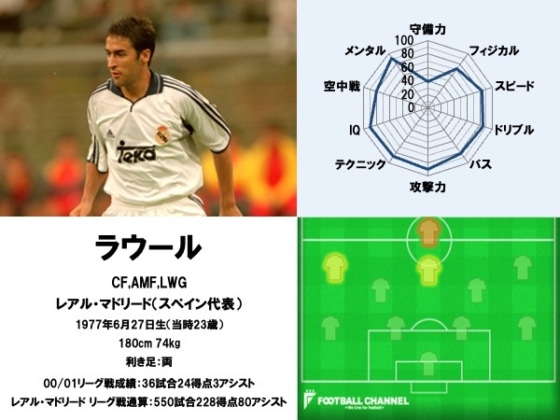 レアル・マドリードの象徴、それがラウールである。下部組織から育ち、トップチームではエース・主将として数多くのゴールを決めるとともに数々の栄光を手に入れた。「レアル・マドリードの背番号7」といえば、今でもクリスティアーノ・ロナウドではなくラウールを思い浮かべる人が多いのではないか。