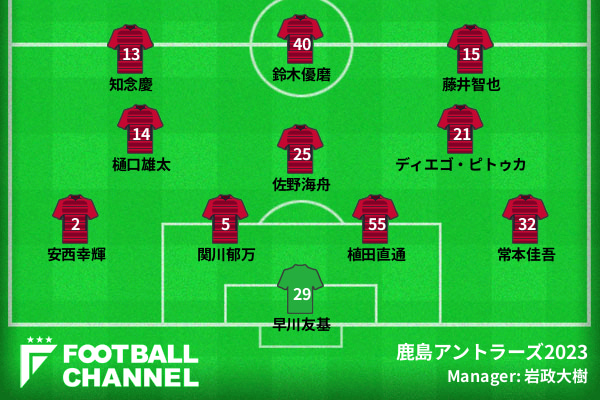 鹿島アントラーズのフォーメーションは以下の通り。データは2023シーズン開幕時のもの。