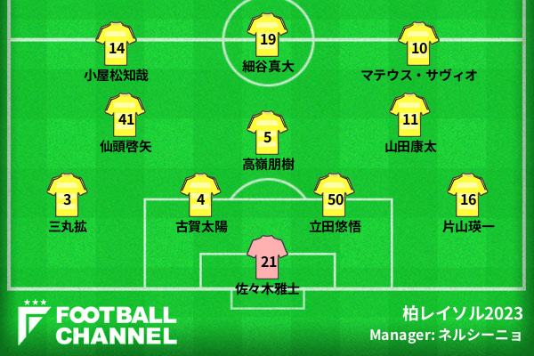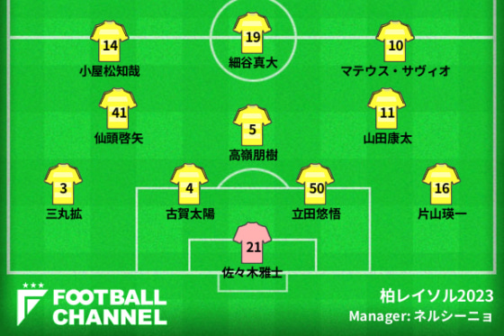 柏レイソルのフォーメーションは以下の通り。データは2023シーズン開幕時のもの。