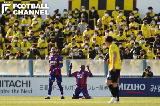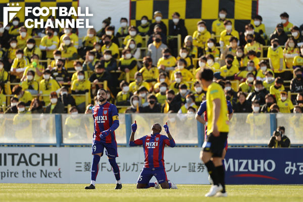 連勝を目指すFC東京は36分に追いつく。スローインを受けた塚川孝輝が右サイドの深い位置に侵入し、折り返したボールをフリーのアダイウトンがゴールに流し込んだ。