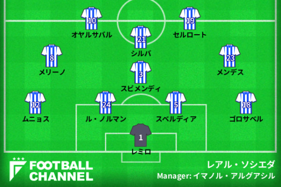 レアル・ソシエダ、ローマ戦の予想フォーメーション
