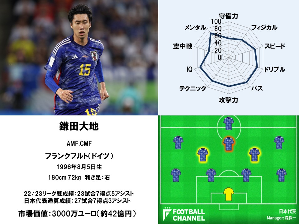 アイントラハト・フランクフルトに所属する鎌田大地はブンデスリーガでも屈指のMFとなった。最初に加入したのは2017年夏だったが、出場機会を得られずベルギーのシントトロイデンに1年間武者修行してフランクフルトに戻ってきた。20/21シーズンはブンデスリーガで2桁アシストを記録し、今季は公式戦トータルで2桁ゴールを記録。ビッグクラブへの移籍の噂は絶えないほどの実績を残している。
