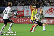 まさかの逆転を許した日本代表。ビハインドを背負ったことで逆に縦の意識が高まった。後半21分と23分には上田が立て続けにヘッドで決定機を迎えるが、両方とも相手GKに防がれ、ネットを揺らすことができない。