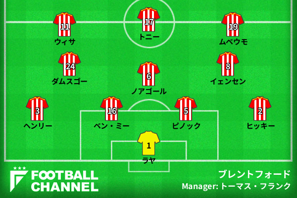 ブレントフォードの予想フォーメーション