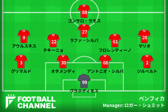 ベンフィカの予想フォーメーション