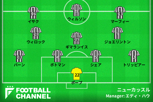 ニューカッスルの予想フォーメーション