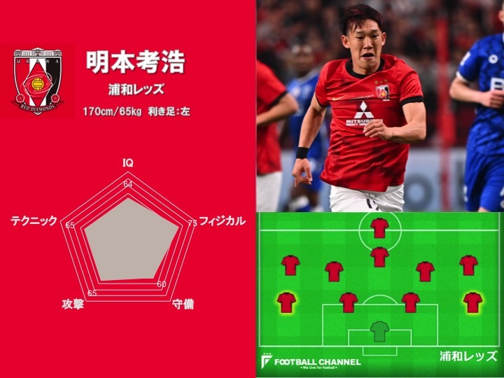 すべての項目で「60」以上というバランスの取れた能力を持つが、中でも「フィジカル」は「75」と高い数値となった。170cmと小柄にもかかわらず、空中戦勝率は74.1%と高く、AFCチャンピオンズリーグ決勝の影響で消化試合数が少ないにもかかわらず、走行距離やスプリント回数といったスタッツでもリーグ上位に名を連ねる。