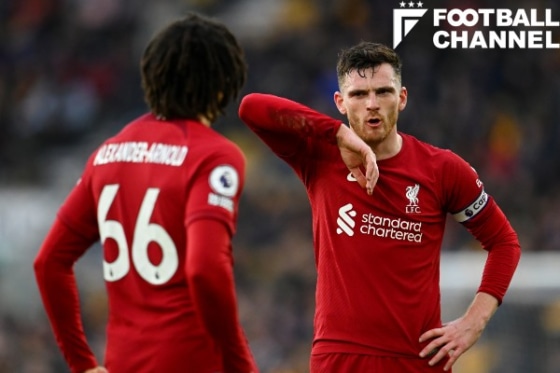 リバプールの両SBは依然としてトレント・アレクサンダー=アーノルドとアンドリュー・ロバートソンが不動のレギュラーを務めている。前者は対人守備という明確な弱点がより顕在化してしまったことで、今季前半戦は批判を浴びることも多かった。しかし、直近は偽サイドバックの役割を任されたことで本来の攻撃面での持ち味が発揮されており、第30節からは5試合連続アシストを達成。シーズン最終盤にリバプールが息を吹き返した要因となっている。