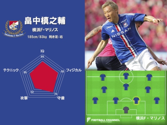 現代のセンターバックには高い足元の技術が求められるが、畠中はその点に関してJリーグトップクラスのものを備えている。DFとは思えない広い視野も相まって、効果的かつ正確な縦パスやロングフィードをバシバシと繰り出せる選手であり、後方から攻撃のリズムを作り出すことが珍しくない。マリノスが高い攻撃力を維持する上で、この男の「スキル」は不可欠なものとなっている。