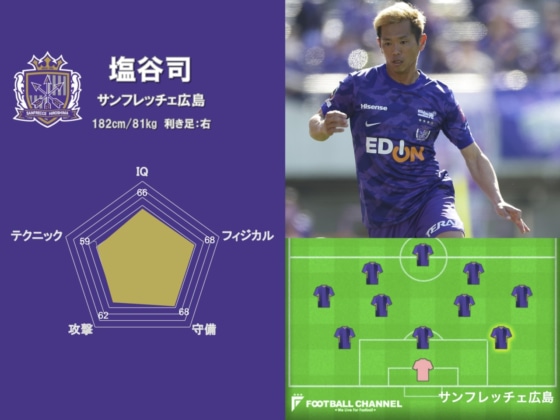サンフレッチェ広島は、現日本代表監督の森保一が率いた2012年から2017年までの間に3度のJ1制覇を成し遂げている。その黄金期を主力の1人として支えたのが塩谷司である。2017シーズン途中にはUAEのアル・アインに活躍の場を移したが、ここで活躍したのち、2021年に広島に復帰。現在に至るまで主力としてプレーするなど、サポーターに愛されている存在である。