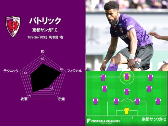 ブラジル出身のパトリックが初めて日本に来たのは2013年で、Jリーグでのプレーは11年目となる。今季は通算5クラブ目となる京都サンガF.C.に加入し、11試合で4得点を挙げている。10月には36歳になるが、年齢を感じさせないエネルギッシュなプレーを見せている。