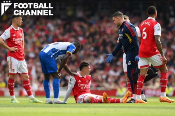 19季ぶりのプレミアリーグ制覇に向け首位マンチェスター・シティを追いかけていたアーセナルだったが、ブライトン戦に敗れたことで優勝は絶望的なものになった。そしてアーセナルにとってさらなる痛手となったのが、今季の躍進を支えた1人であるマルティネッリの負傷。ブライトンのモイセス・カイセドのタックルを受け20分に負傷交代となったマルティネッリは、試合後に保護ブーツを履いているのが中継に映し出されていた。
