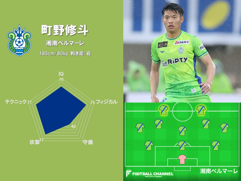 185cmという恵まれた体格を持つ町野は、ゴール前に留まるだけでなく、サイドやライン間でボールを受けて起点となるプレーにも長けている。状況に応じたプレー選択の質が、「IQ」の高評価につながっている。