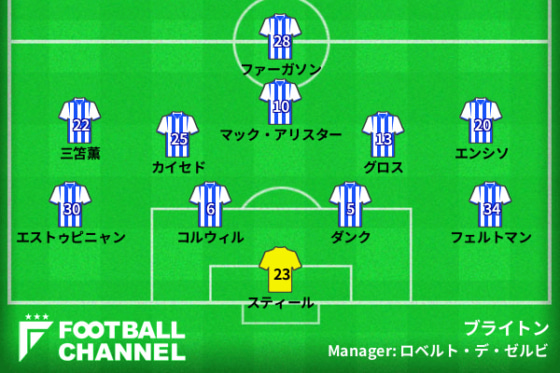 ブライトンの予想フォーメーション