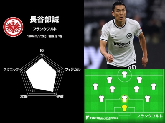 長谷部は主に3バック中央のリベロとして今季公式戦21試合に先発起用されており、4月以降はほぼ毎試合先発するなど、監督からの信頼は厚い。今季は13シーズンぶりにUEFAチャンピオンズリーグの舞台にも出場し、ハリー・ケインとも対峙した。当然「フィジカル」の部分で年齢による衰えは否めないが、DFライン全体を統率するキャプテンシーやここぞという時の球際の激しさはトップレベルを維持しており、「守備」の値は、現役の代表選手にも見劣りしない。