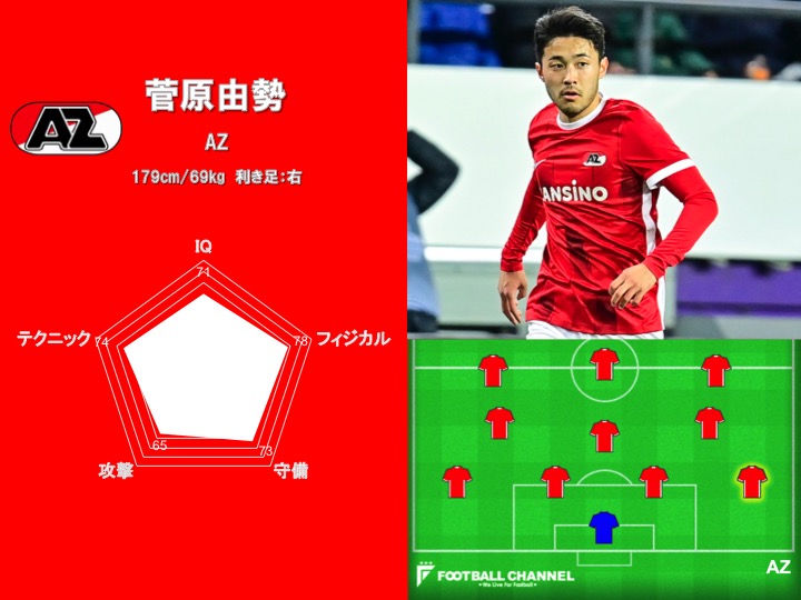 2019年からオランダでプレーしている菅原由勢は、今季充実したシーズンを送った。リーグ戦3得点8アシストはともにキャリアハイとなる記録で、アシストはチームトップに並ぶ数字となっている。日本代表では3月の活動で2試合連続先発起用され、6月の招集リストにも名を連ねるなど、長らく右サイドバックを務めてきた酒井宏樹に代わり、そのポジションで地位を確立しようとしている。