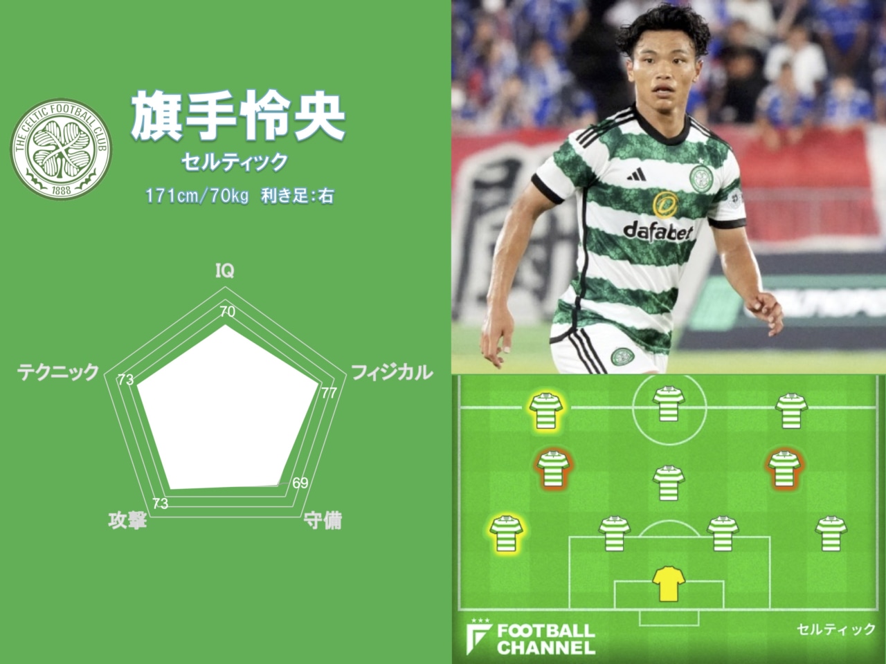 旗手は中盤の働き者でありながら、崩しの局面でも繊細なプレーをみせる。非凡な「スキル」を発揮して相手DFのベクトルの逆を巧みに突き、スペースの狭いペナルティエリア内でも難なくプレーする。加えて、今季のビッグチャンスクリエイト数でリーグトップ10(10回)に入るなど味方を生かす術も熟知しており、強烈なシュートも光る。こうした武器の多さが、欧州でも存在感を潜めない理由だろう。(データサイト『Sofa Score』を参照)