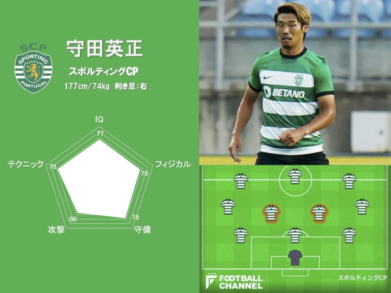 潰し屋タイプではないが、読みを利かせた鋭い出足からのボール奪取や、危険なスペースを素早く察知して埋めるプレーなど、数字には表れにくいクレバーなディフェンスにも定評がある守田。ボランチというポジション柄、「攻撃」に関してはそれほど高い数値とはならなかったが、その他の項目(守備、フィジカル、スキル、IQ)で全て「75」以上の数値を叩き出している。