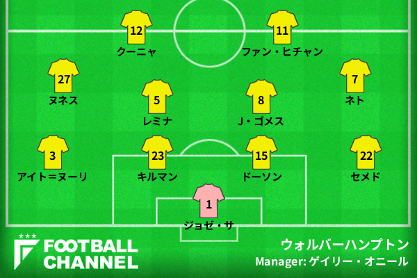 ウォルバーハンプトン、ブライトン戦の予想フォーメーション