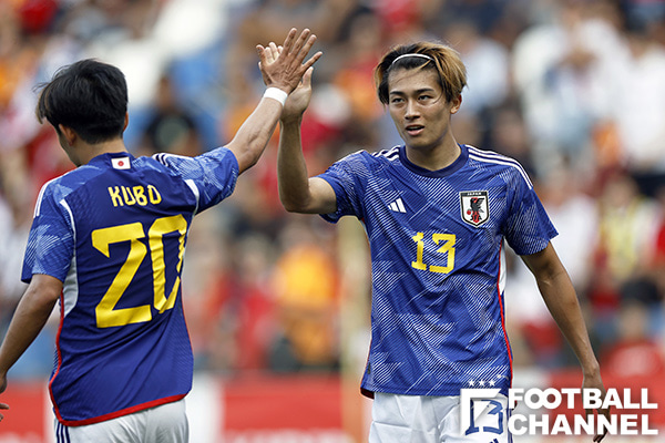 日本代表は、15分に伊藤敦樹の代表初ゴールで先制。中村は28分に久保建英が放ったシュートのこぼれ球をゴール右に押し込むと、その8分後にこの日2点目をマークした。