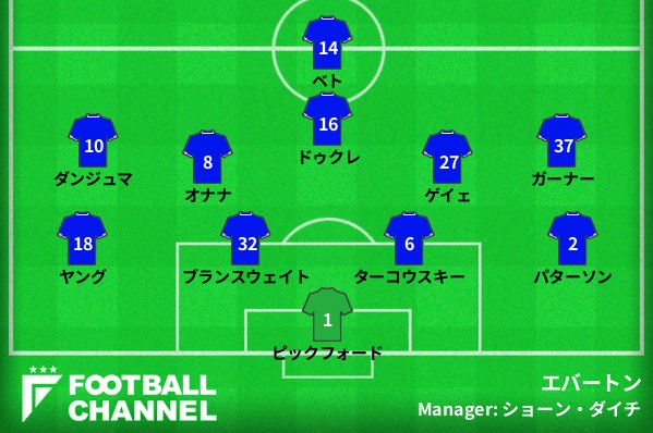 エバートンの予想フォーメーション