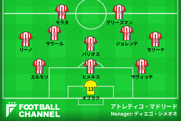 アトレティコ・マドリード、ラツィオ戦の予想フォーメーション