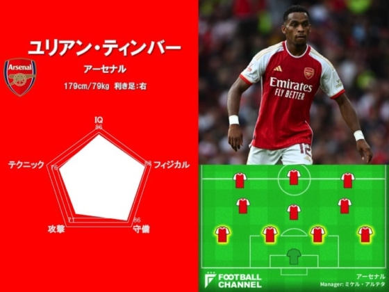 今夏にアーセナルに加入したユリエン・ティンバーがCB能力値ランキングで9位にランクインした。今季開幕戦で右膝の前十字靭帯損傷の大けがを負ったことで、今季絶望の可能性もあるが、最終ラインの全ポジションとボランチでプレーできるユーティリティ性が魅力の選手である。