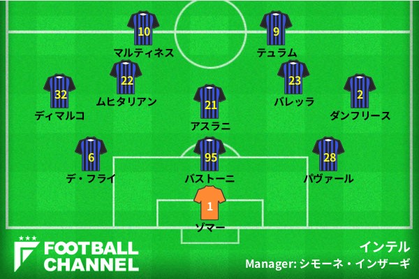 インテルの予想フォーメーション