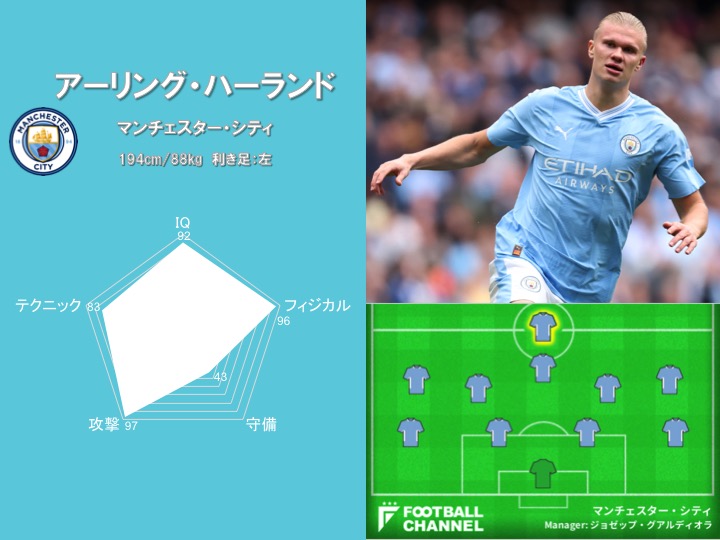昨季トレブル(三冠)を達成し、名実ともに“世界最強”となったマンチェスター・シティにおいて、絶対的な1トップとして君臨し続けたのがアーリング・ハーランドだ。