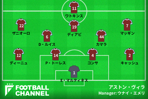 アストン・ヴィラ、ブライトン戦の予想フォーメーション