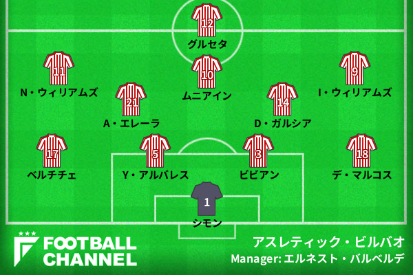 アスレティック・ビルバオ、レアル・ソシエダ戦の予想フォーメーション