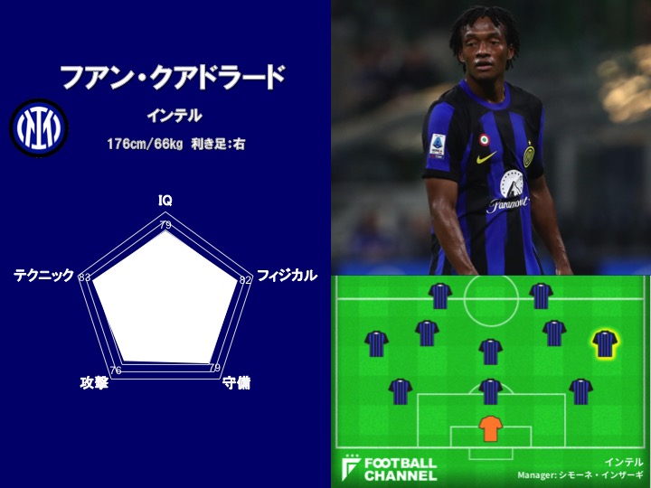 昨季までユベントスでプレーしていたクアドラードは、この夏の移籍市場でインテルへフリー移籍した。ユベントス在籍時にはインテルの選手と幾度となく小競り合いをしており、クアドラードの移籍に際しては抗議活動も行われた。熱狂的なインテリスタ(インテルのサポーター)たちに自身の存在を認めてもらうためには、結果を出し続けるしかない。