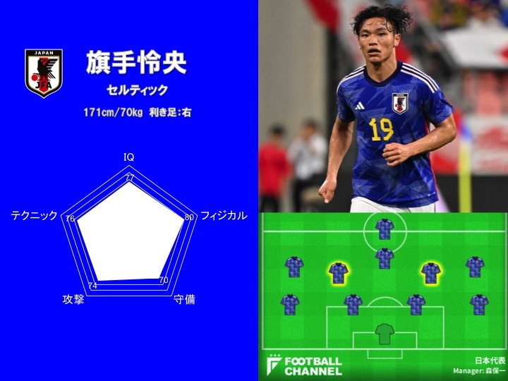 セルティックで活躍する旗手怜央は6月シリーズでハイパフォーマンスを披露し、評価を高めた。しかし、真価が問われるはずだった9月の欧州遠征は負傷のため無念のメンバー外に。復帰する形となった10月シリーズの2試合では、日本代表定着のために再アピールが必要となるはずだ。